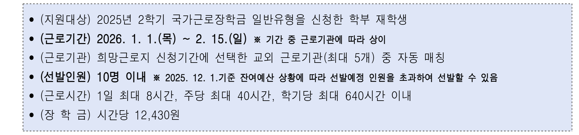 2025학년도 2학기 동계방학 집중근로 국가근로장학생 선발 일정 안내
