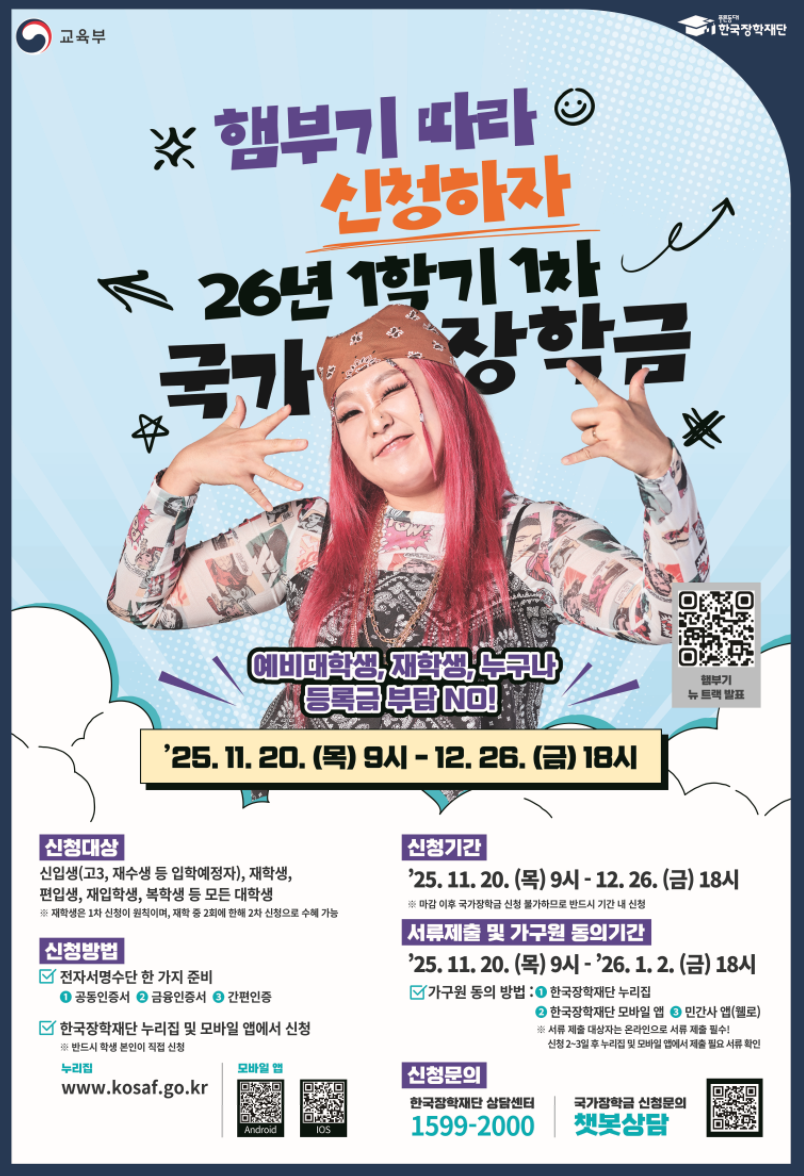 2026학년도 1학기 국가장학금 1차 신청 일정을 안내드립니다.