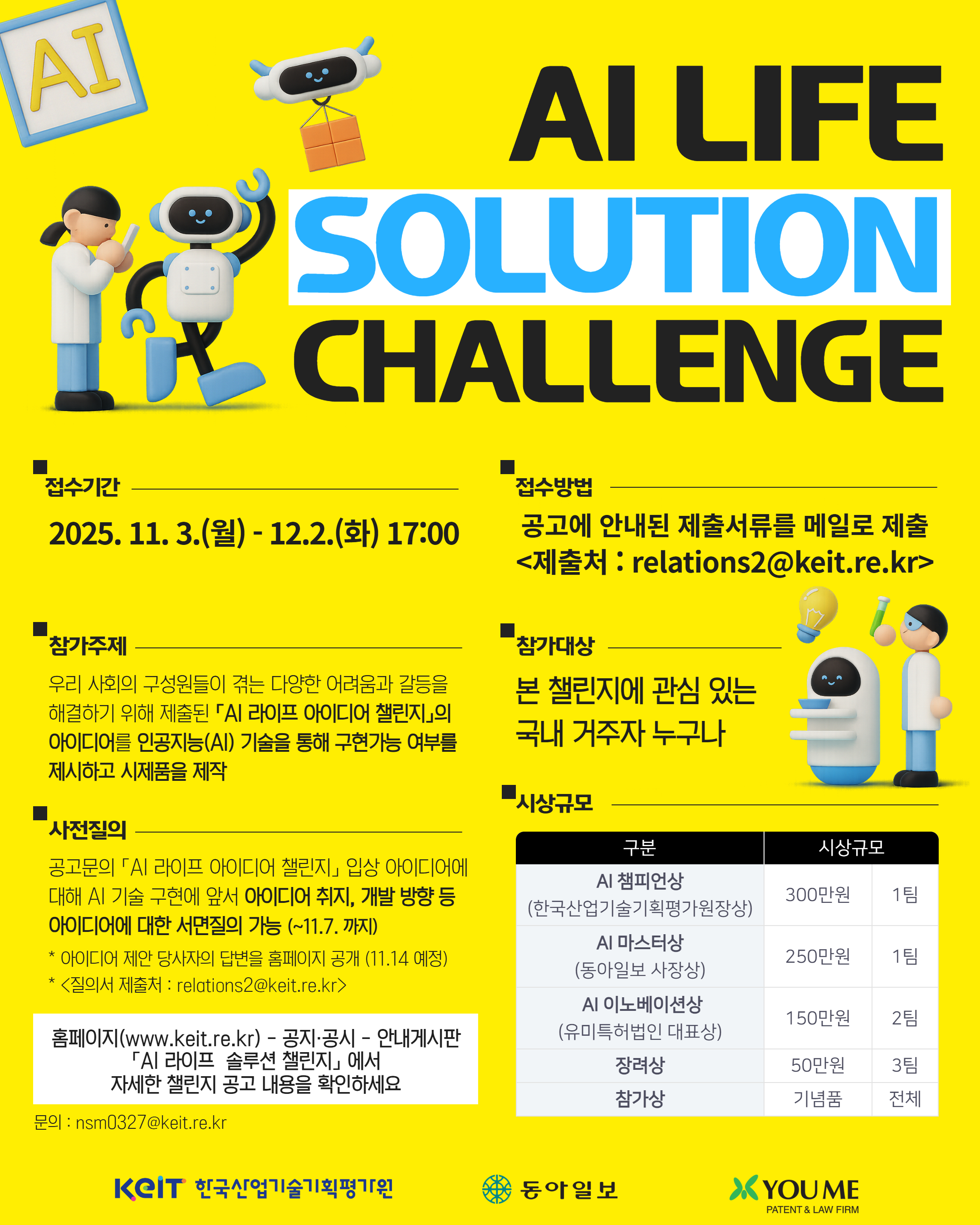 - AI마스터상(동아일보 사장상) : 250만원, 1팀