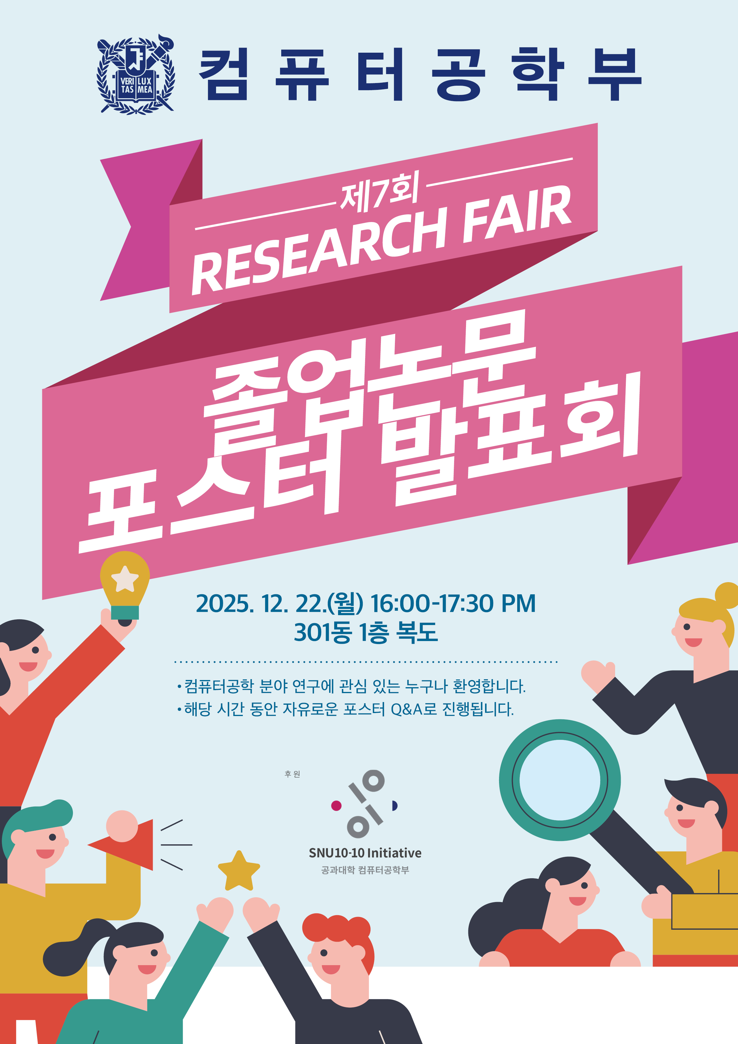 2026년 2월 대학원 졸업예정자의 졸업논문 포스터 발표회인 제7회 리서치페어 개최를 안내 드립니다.