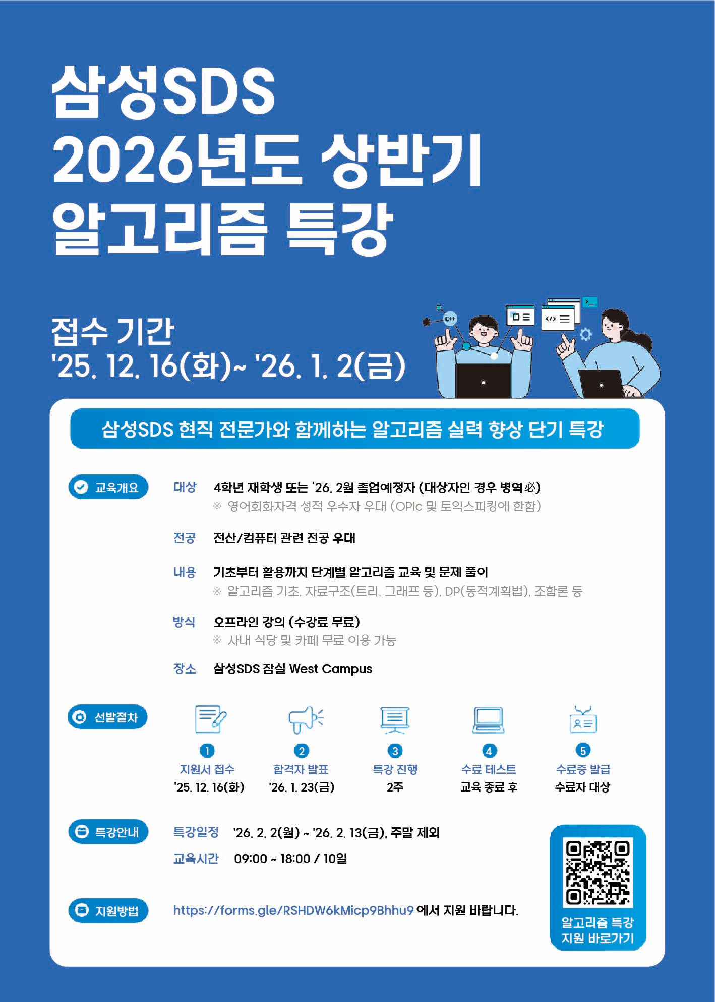 여러분들을 삼성SDS 2026년 상반기 알고리즘 특강에 초대합니다!