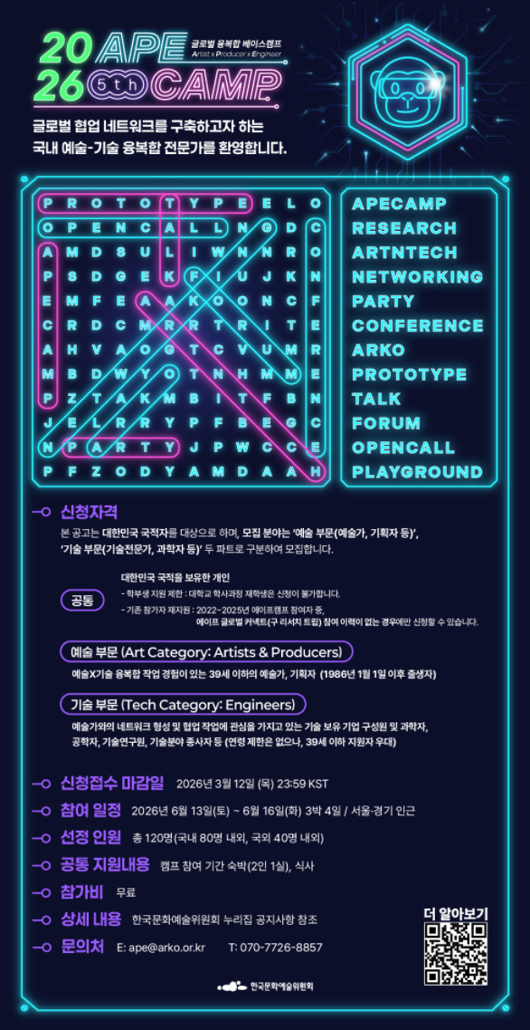 예술기술융합 창의인재 협업 네트워크 활성화 사업 제5회 에이프캠프(APE CAMP) 안내