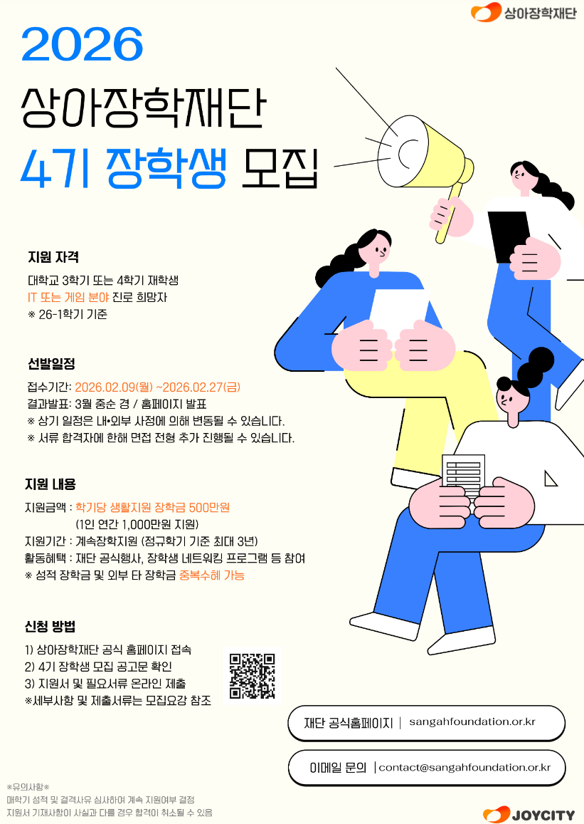 2026년 상아장학재단 IT&게임 4기 장학생 모집 안내