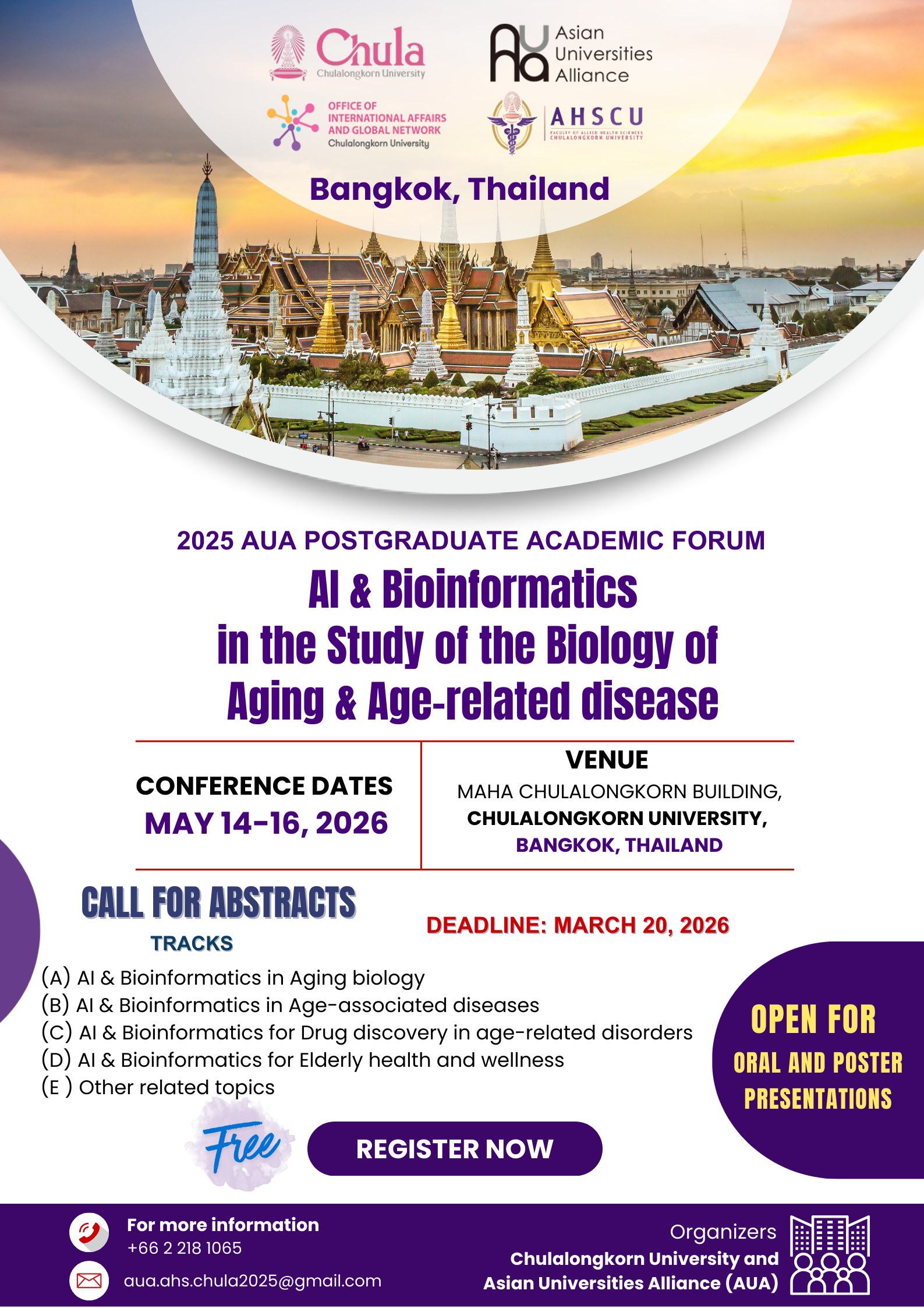 아시아대학연맹(AUA) 회원교 Chulalongkorn에서 진행하는「AUA Postgraduate Academic Forum(CU)」참가자를 아래와 같이 모집하오니 관심있는 대학원생들은 지원하시기 바랍니다.
