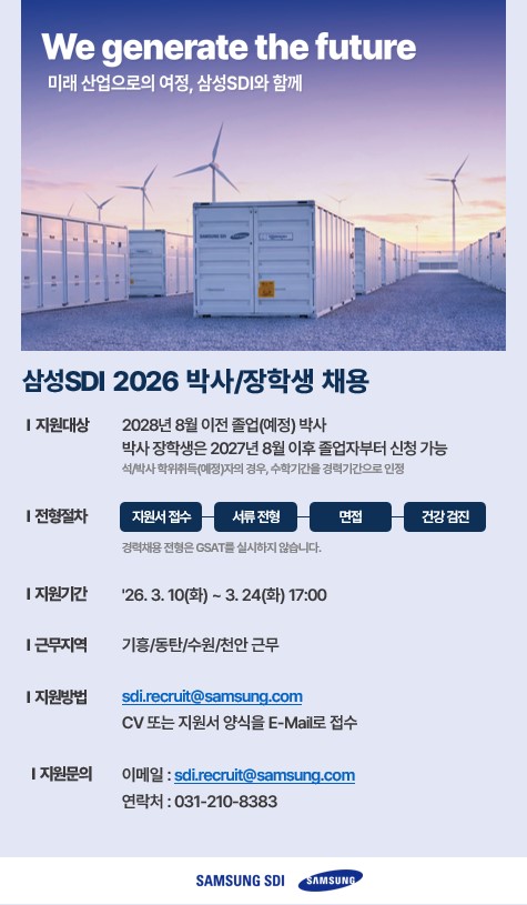 [삼성SDI] 박사/장학생 채용 (~3/24)