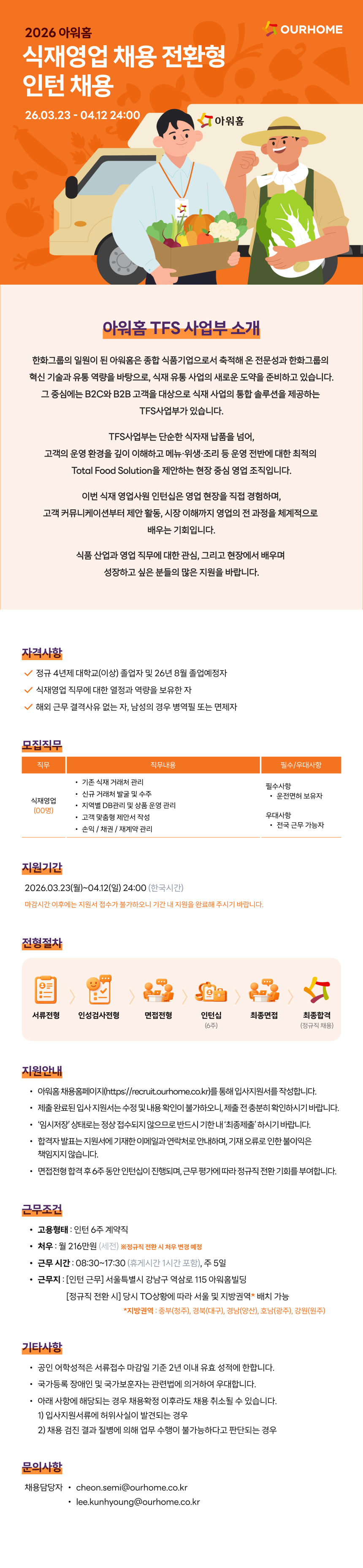 -홈페이지 : https://recruit.ourhome.co.kr/ohrecview.do?rec=13237