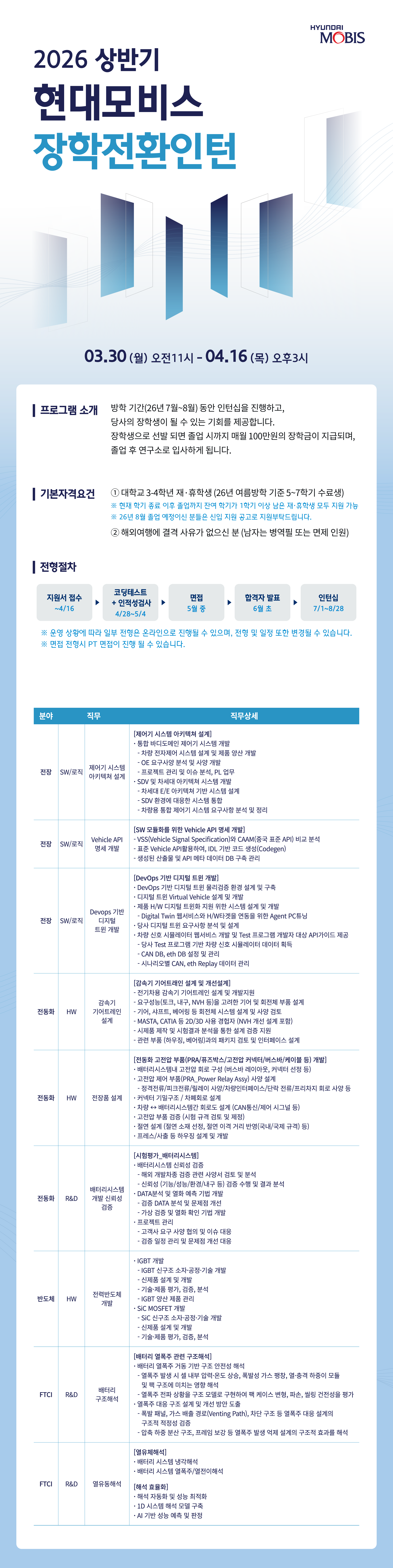 [현대모비스] 26년 상반기 장학전환인턴 모집 (~4/16)