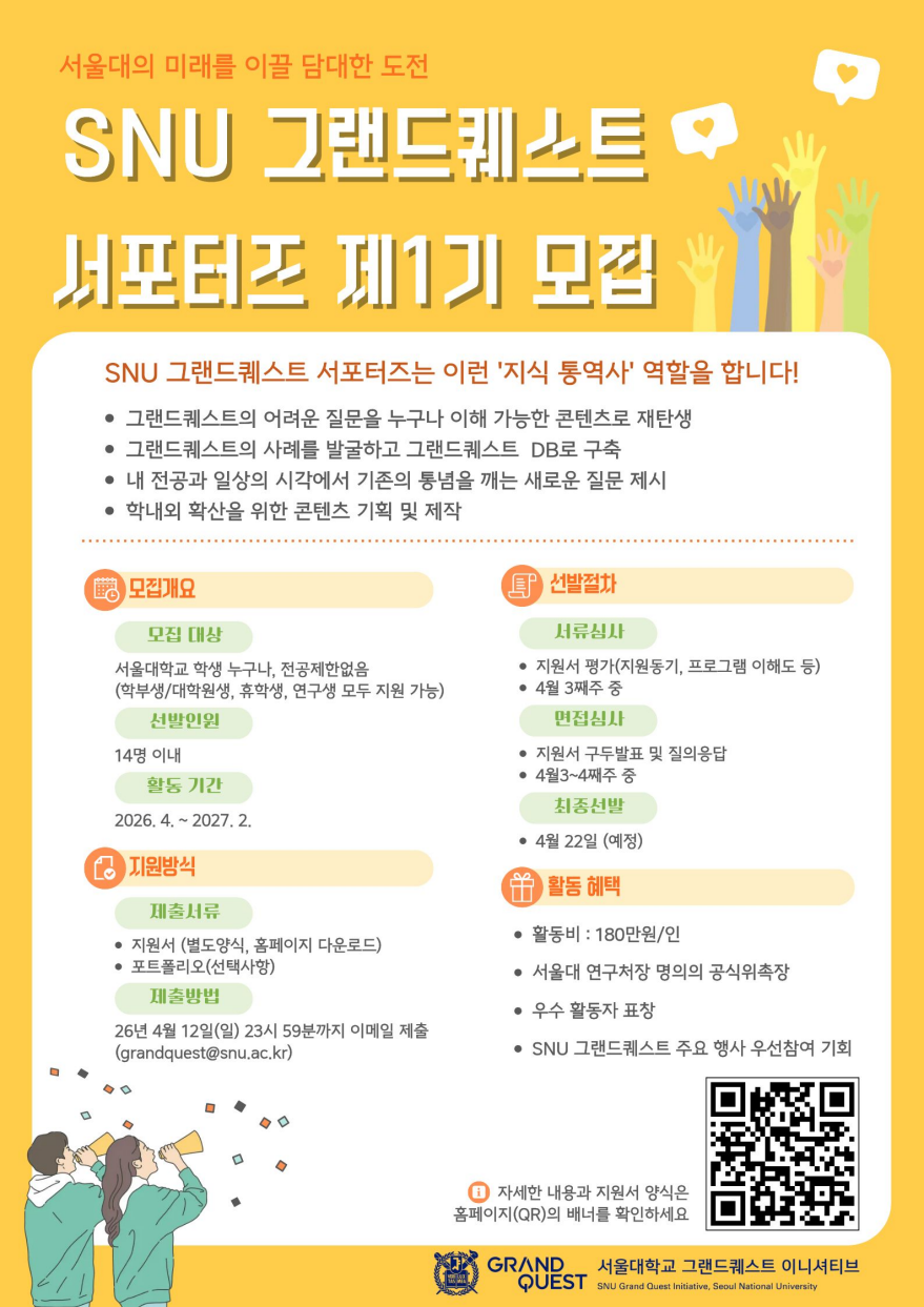 'SNU 그랜드퀘스트 서포터즈' 1기 모집 홍보