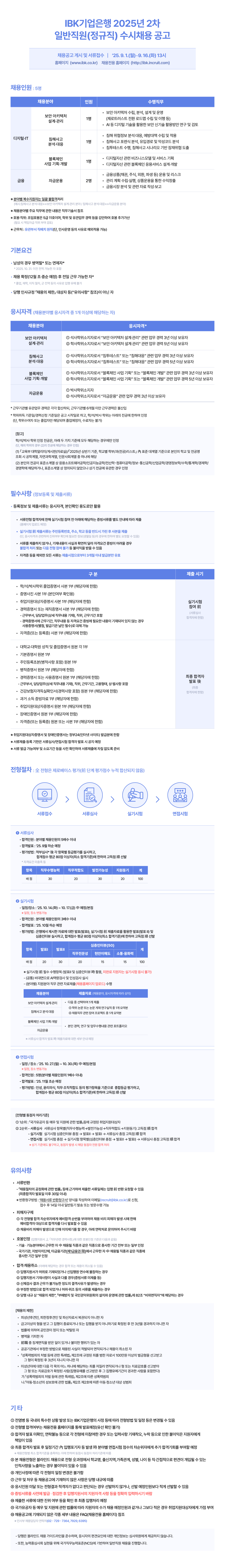 IBK기업은행에서2025년 2차 일반직원(정규직) 수시채용을 진행하고 있습니다.