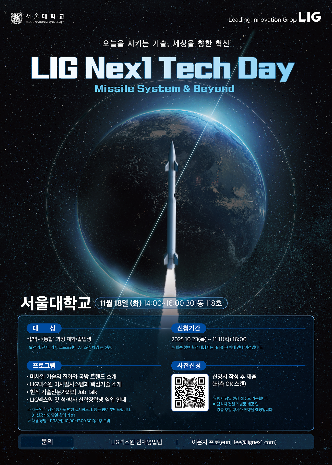 (미사일 기술 진화와 국방 트렌드소개 / LIG넥스원 핵심기술 소개 / JOB Talk / 산학장학생 영입 안내)