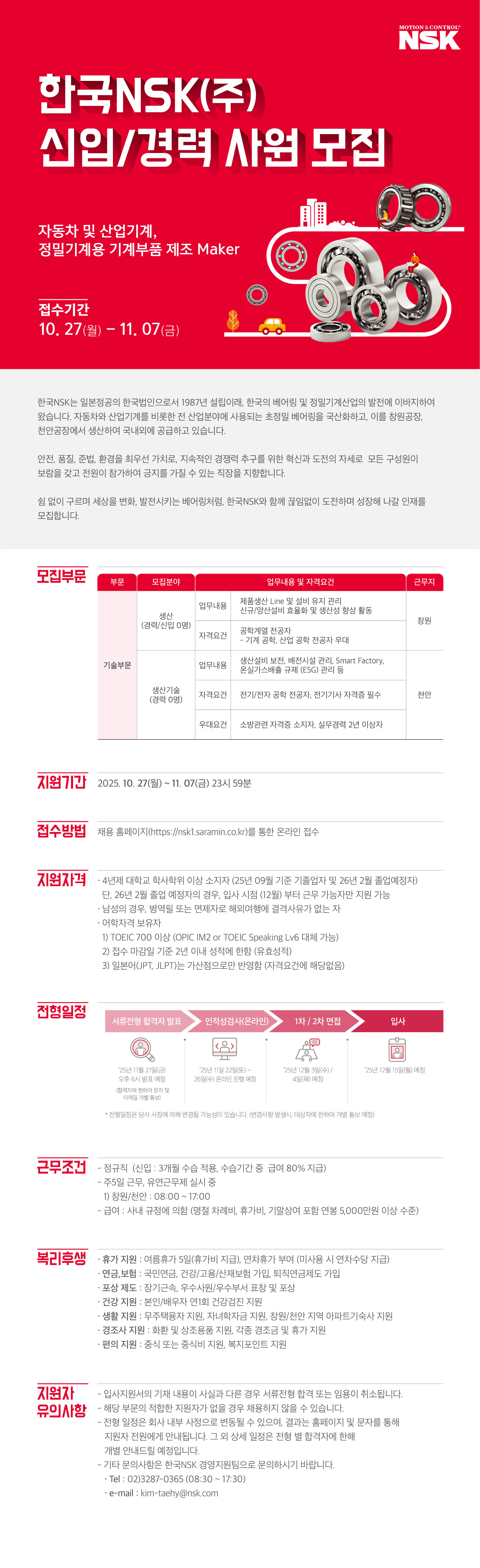 - 기타 문의사항은 한국NSK 경영지원팀으로 문의하시기 바랍니다.