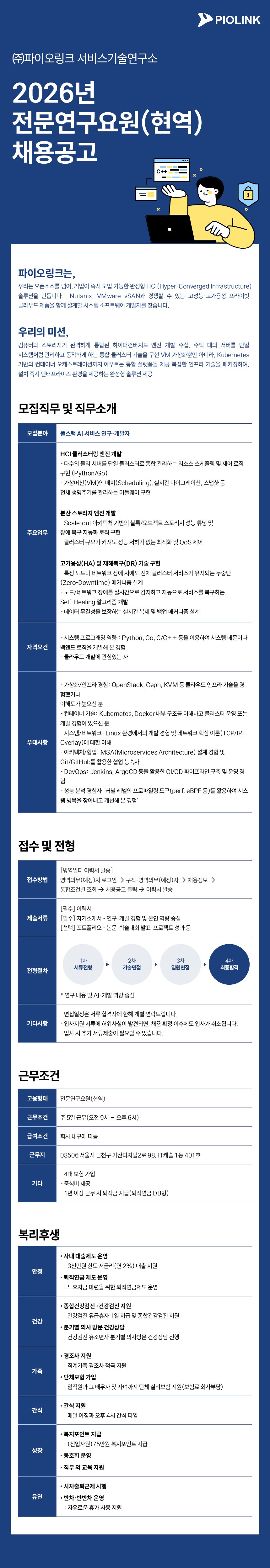 [프라이빗 클라우드(HCI)] 병역특례 전문연구요원 개발자 모집